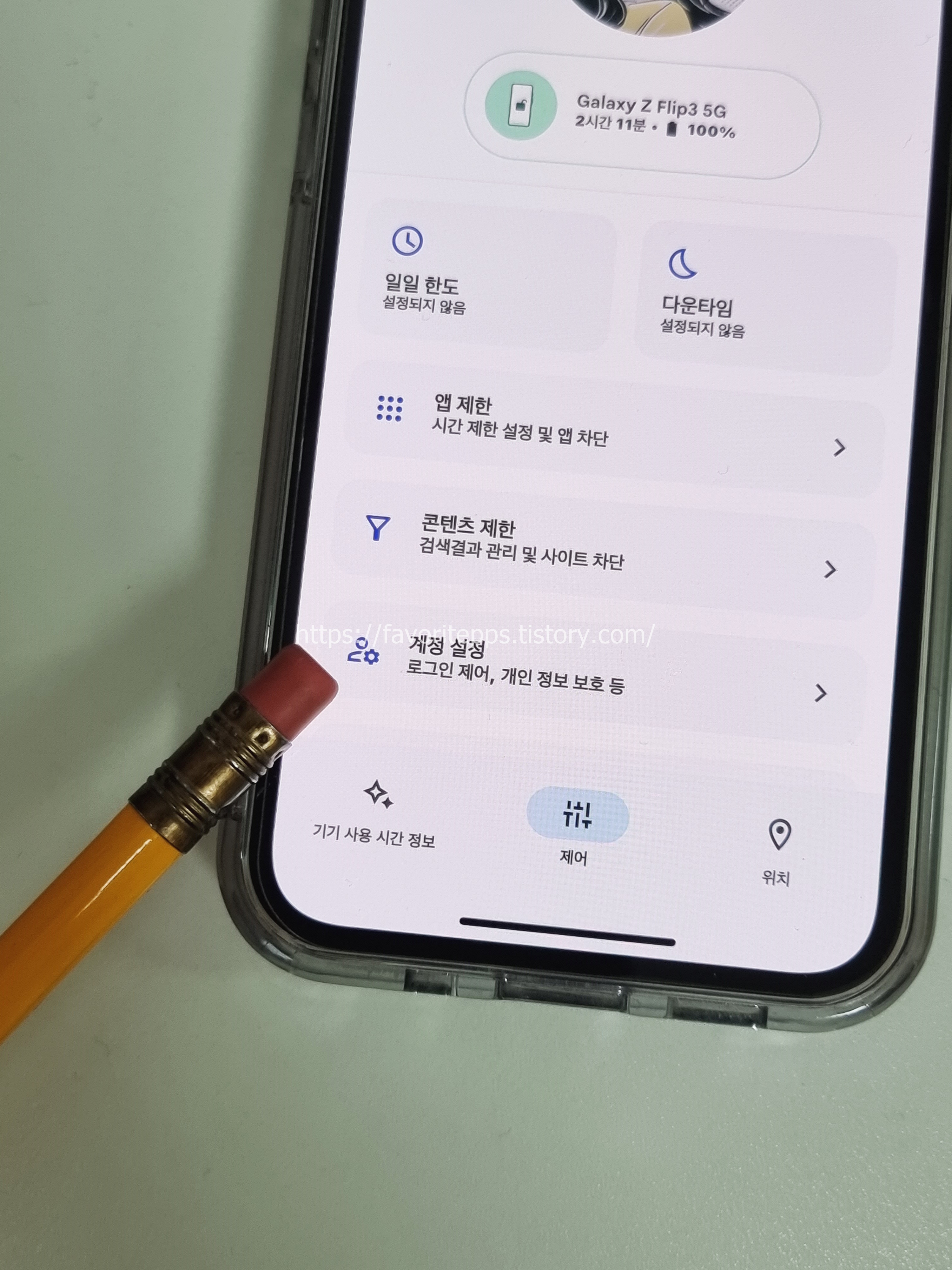 우선 구글 패밀리링크 앱 진입후 하단에 위치하고 있는 제어 버튼을 눌러줍니다.
