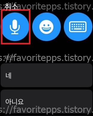 3. 애플워치에서 받아쓰기 기능은 마이크 아이콘을 터치해주면 사용이 가능하다.