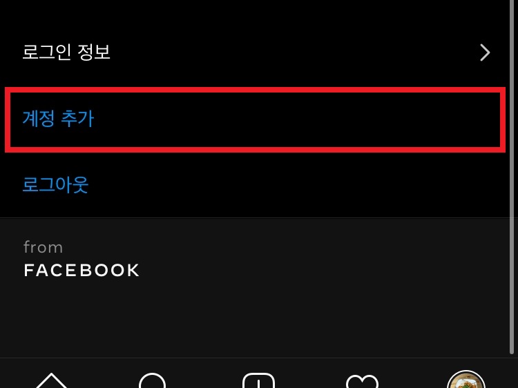 그리고 설정으로 넘어가서는 스크롤을 아래로 내려 로그인 정보 부분에 있는 계정 추가 버튼을 선택하여 주세요.