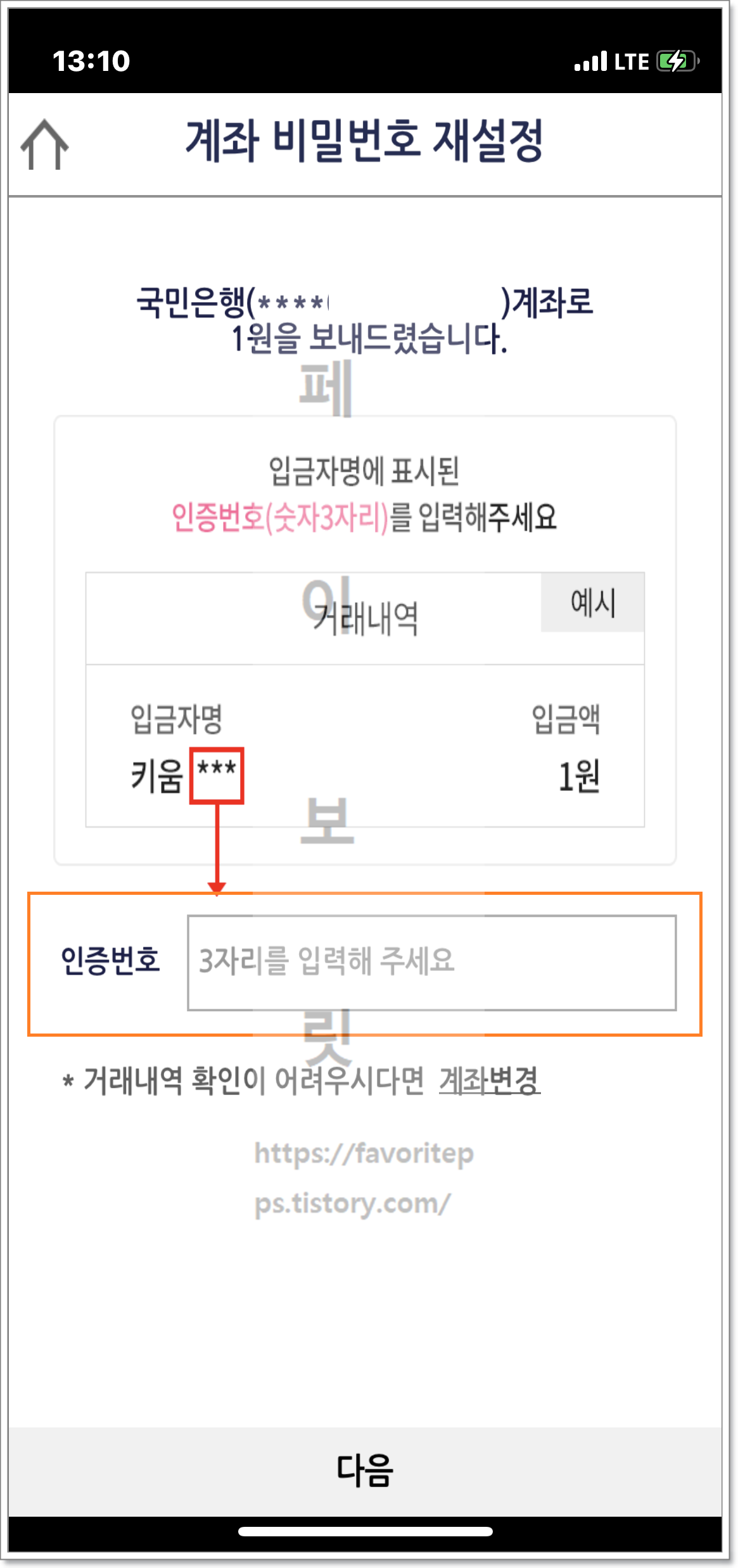 타행 계좌정보를 입력하는 페이지가 나오며 은행/증권사 선택후 계좌번호 입력 아래 다음 버튼을 눌러줍니다. 그럼 키움증권에서 본인 타행 계좌로 입금을 하게되며 계좌이름에서 숫자 3자리를 인증번호란에 작성하여 아래 다음 버튼을 눌러주면 되겠습니다.