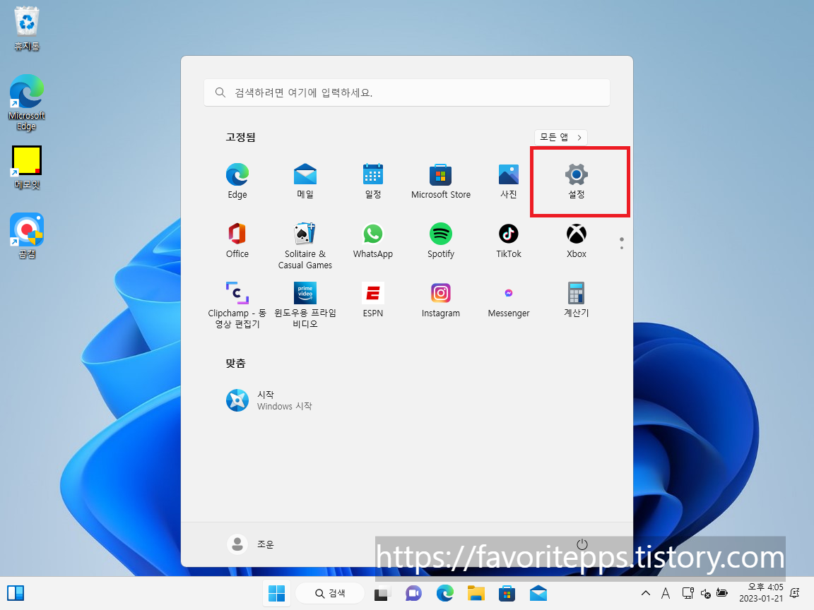 윈도우11 다운그레이드 방법, 윈도우11에서 윈도우10으로 다시 돌아가기 위해서는 우선 윈도우키를 누르고 설정으로 들어가 준다.